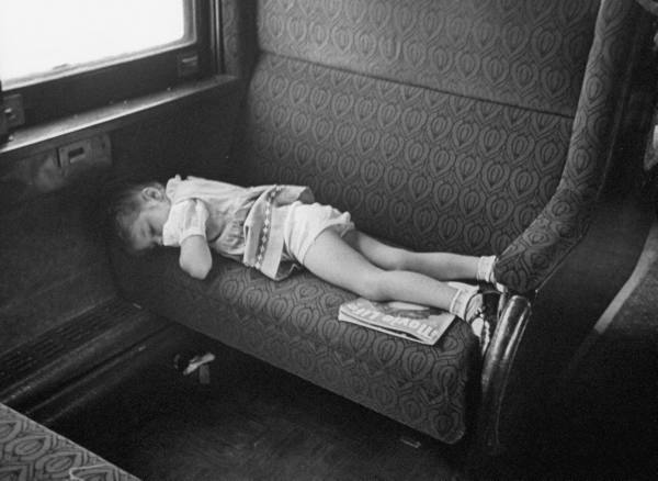 An American solider sleeping on a train, 1942 (soldiers sleeping on trains could almost be its own post...). Source