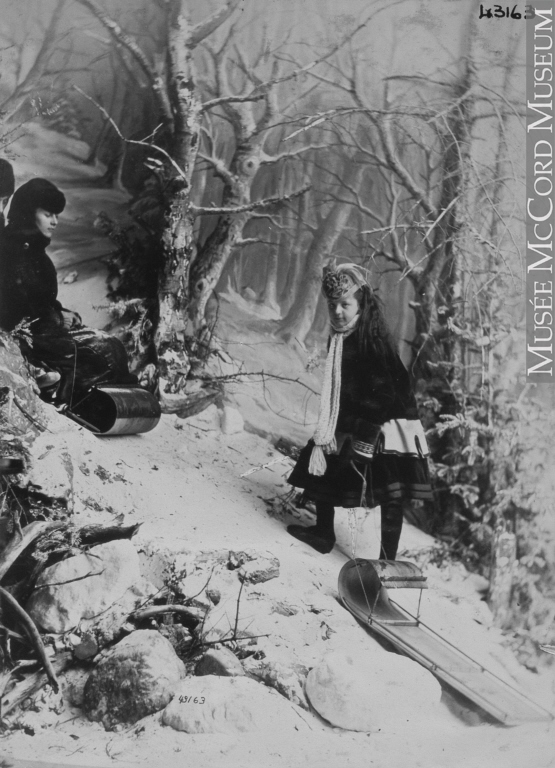 The answer, of course, is obvious. You go to the photographer William Notman in Montreal, who provides the fake slope, fake snow, and fake sleds in his studio. All you have to do is dress up in your toboggan clothes and maybe pretend to crash now and again.